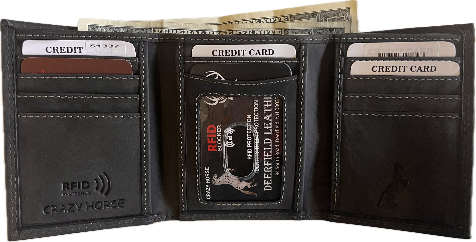 CRAZY HORSE RFID Distressed Leather Trifold Men’s Wallet 51337