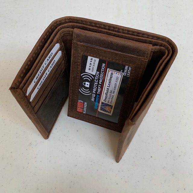 Great delivery, received on second day. The product is well made. My mistake was not calling to ask for the dimensions. This wallet is only 3.5″ W x 4.25″ L x 0.8″ D. Also the RDIF is not throughout the wallet. My current one is much larger, therefore holds more and has RDIF fabric all through it, even in the bills section. The zipper is a bit hard to pull around too. Not sure how long that would last. Workmanship is great as is the leather quality. Unfortunately I will return.
