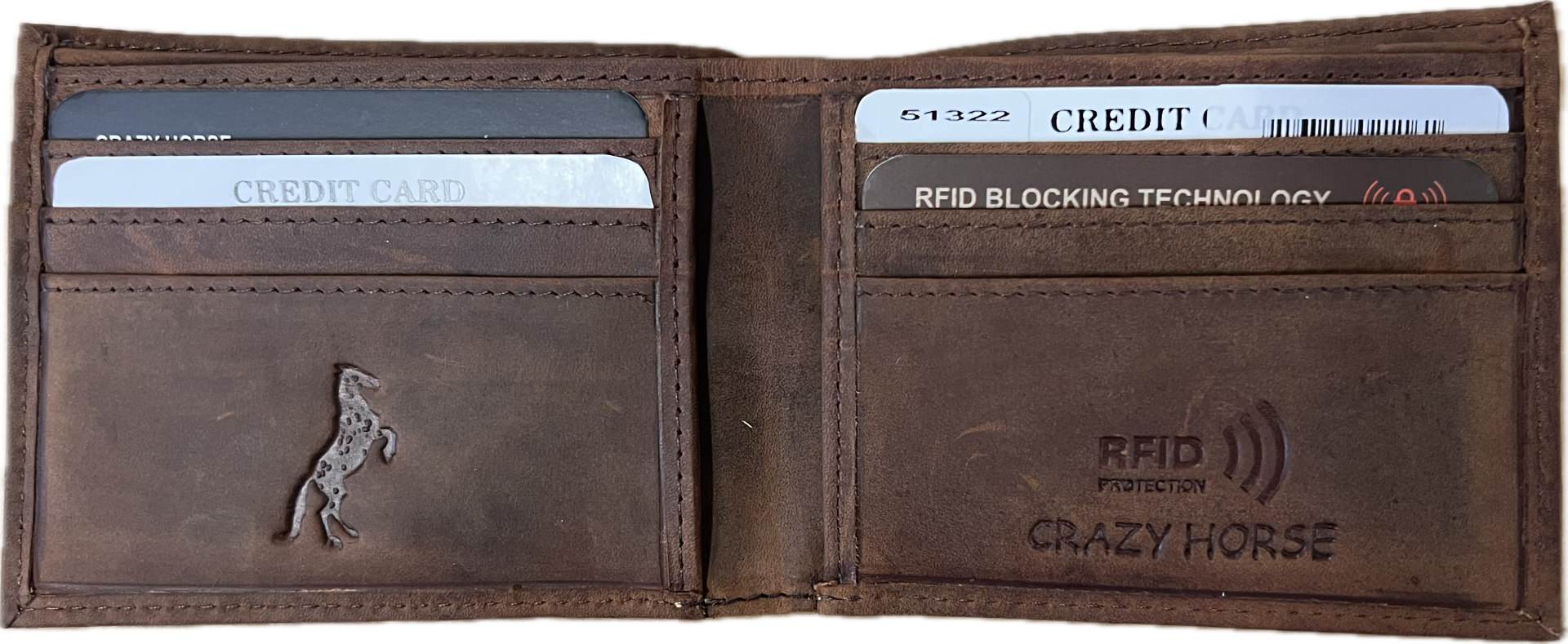 CRAZY HORSE* “Rustic Look” Bifold RFID Leather Wallet 51322